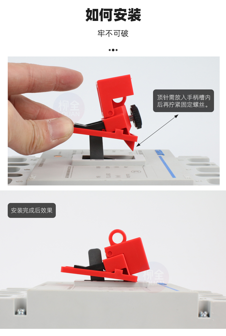 产品特点根据断路器手柄设计,适配市面上绝大部分断路器上锁。
