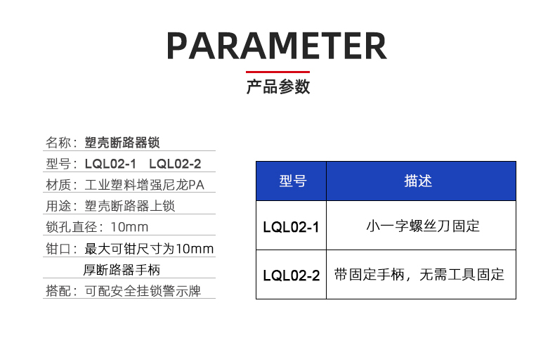 产品规格LQL02-1(需要一字螺丝刀固定)LQL02-2(带懒人螺丝,手动固定)