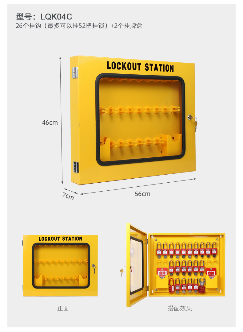 26个挂钩(最多可以挂52把挂锁)+2个挂牌盒