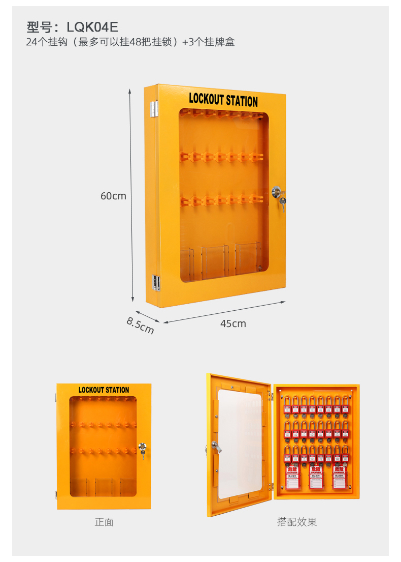 产品尺寸60cm*45cm*8.5cm产品描述24个挂钩(最多可以挂48把挂锁)+3个挂牌盒