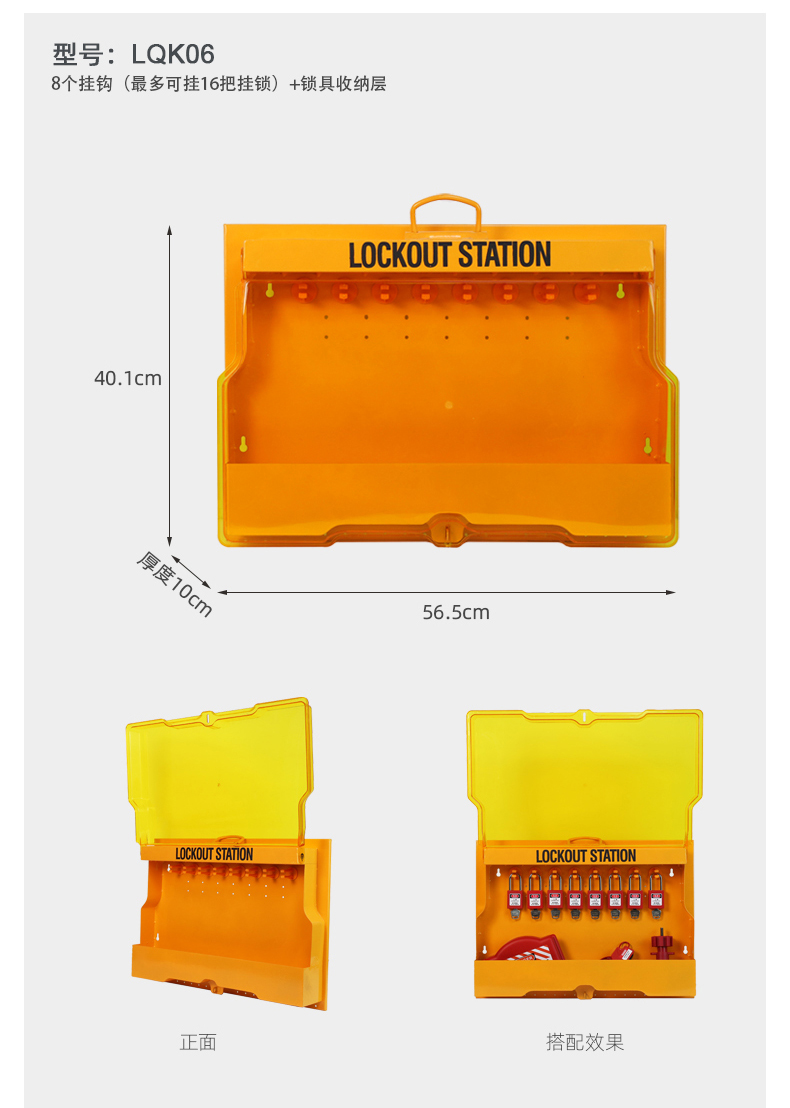 产品尺寸56.5cm*40.1cm*10cm产品描述8个挂钩(最多可挂16把挂锁)+锁具收纳层