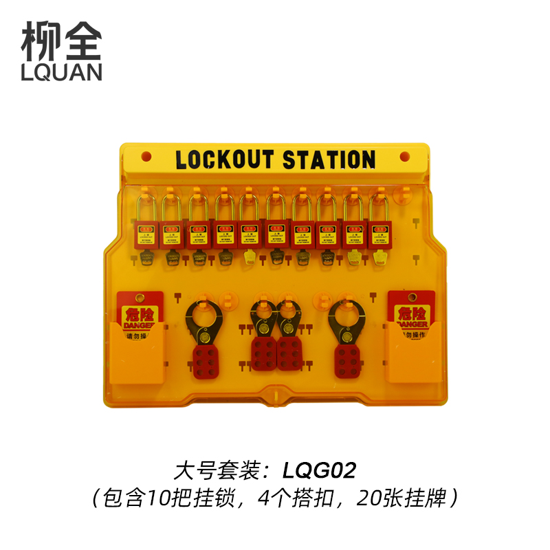 包含如下:锁站(LQLS02A)*1PCS安全挂锁(P38S-KD)*10PCS搭扣锁具(LQ420)*2PCS搭扣锁具(LQ421)*2PCS安全挂牌(LT08-R)*20PCS