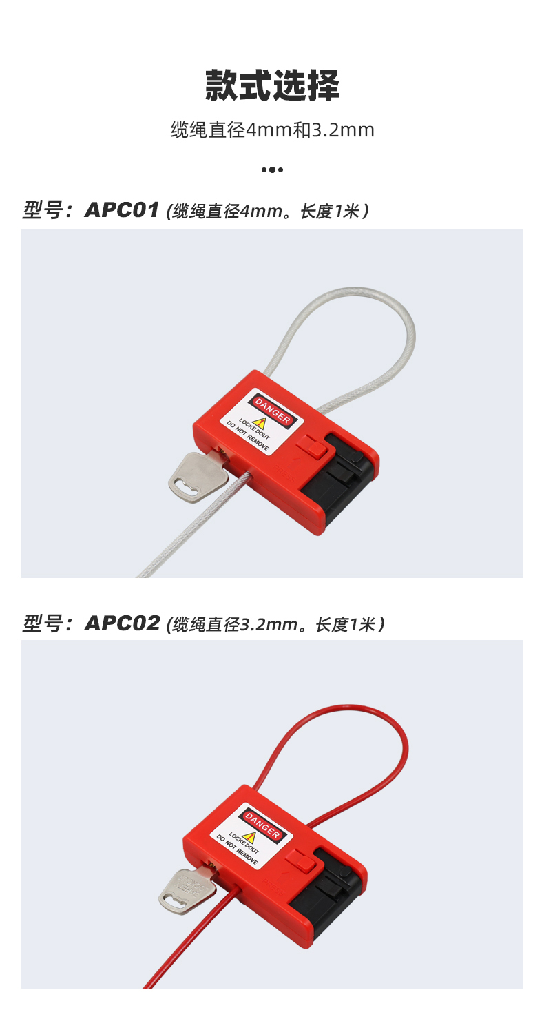 产品尺寸参考详情页产品规格APC01:缆绳颜色半透明,直径4mm,长度1米APC02:缆绳颜色红色,直径3.2mm,长度1米