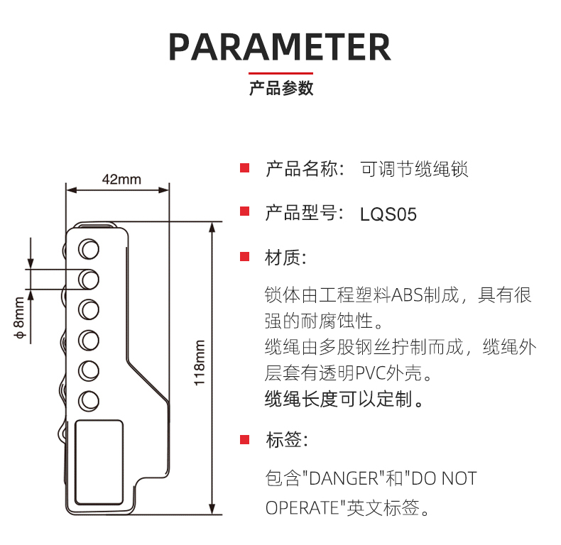 贝迪型可调节绝缘缆绳__型号:LQS05